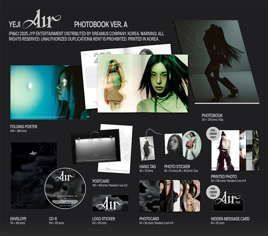 1 CD | 1 Photobook (80p) | 1 Folded Poster (en paquete) | 1 Envelope | 1 Postcard | 1 Tag Sticker | 1 Photo Sticker